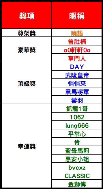※ 由於本次活動完成天數最高僅有6天,故尊榮獎從完成6天玩家抽出!