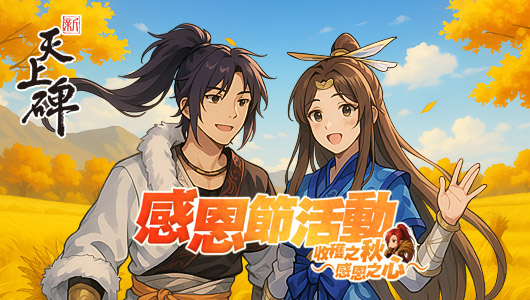 由億泰利多媒體代理的線上遊戲《新天上碑》推出感恩節系列活動,收穫之秋、豐收簽到、感恩火雞、祝福南瓜、憤怒火雞王、夏炎守護者、報恩寶盒、成長精華等各種精彩活動,願感恩的心溫暖每位修行者,相約《新天上碑》共享豐盛回饋,在祝福與戰力齊飛的節日裡,玩出滿滿幸福感!