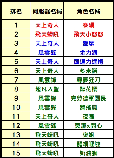【天碑】【感恩節活動】消費排名獎:第五階段