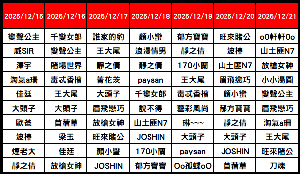 【旺來】【聖誕節活動】麻將積分賽幸運獎:第三階段