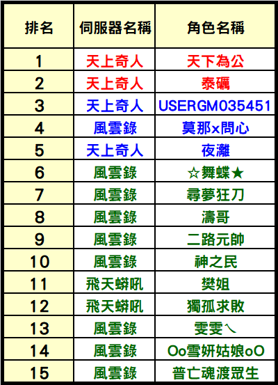 【天碑】【聖誕節活動】消費排名獎:第一階段