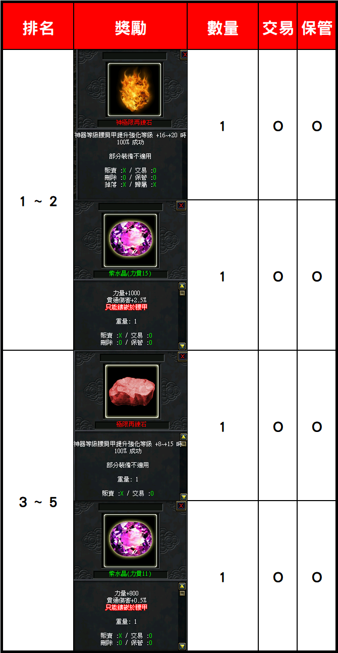 各活動階段將依玩家於商城的「累積消費點數」進行排名,並依排名獲得對應獎勵!