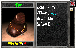 「無極頭盔」、「無極項鍊」金字套裝組,設定:可交易、可擺攤、可存倉