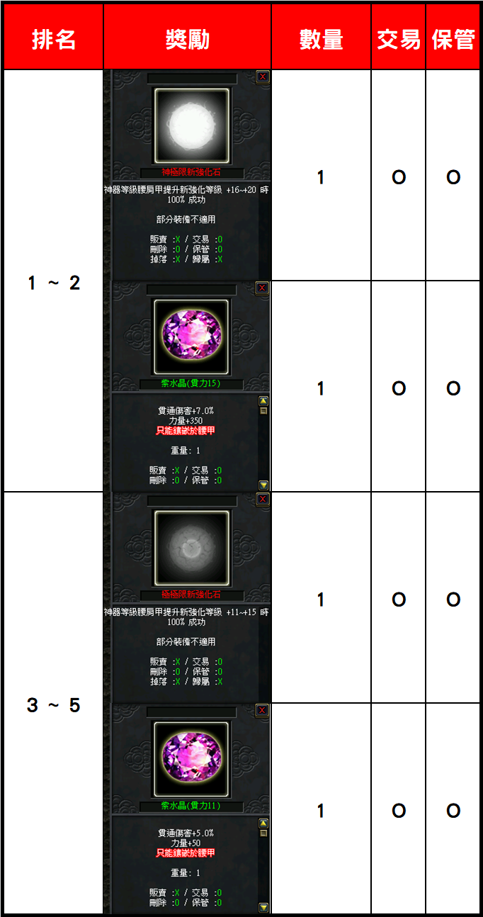 各活動階段將依玩家於商城的「累積消費點數」進行排名,並依排名獲得對應獎勵!