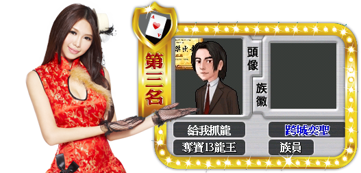 ◎紅不讓次數多者 ◎鐵支次數多者 ◎同花順次數多者 ◎五枚次數多者 ◎一條龍次數多者 ◎勝場次數高者 ◎負分少者