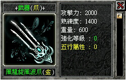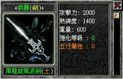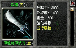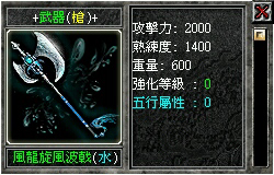 二階龍麟武器乙把:職業自選、無命中率、原重、屬性隨機。 |