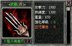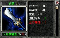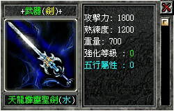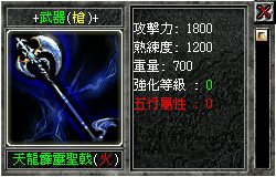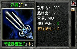 一階龍麟武器乙把:職業自選、無命中率、原重、屬性隨機。 |