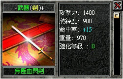 三次奇緣乙把:職業自選、命中率+15、原重、無屬性。 |
