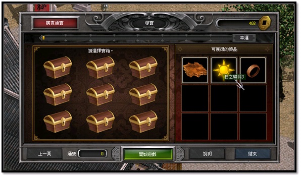 1.活動期間每日可找洛陽城無限大俠(118,316)進行無限道場任務,完成5次無限道場任務時,可獲得碎片寶箱