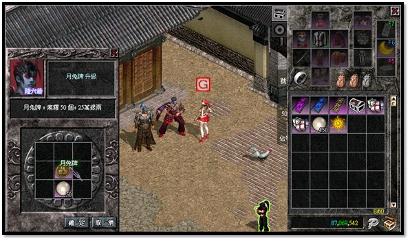 3.放入月兔牌 + 麻糬50個+ 25萬銀兩即可進行升級動作